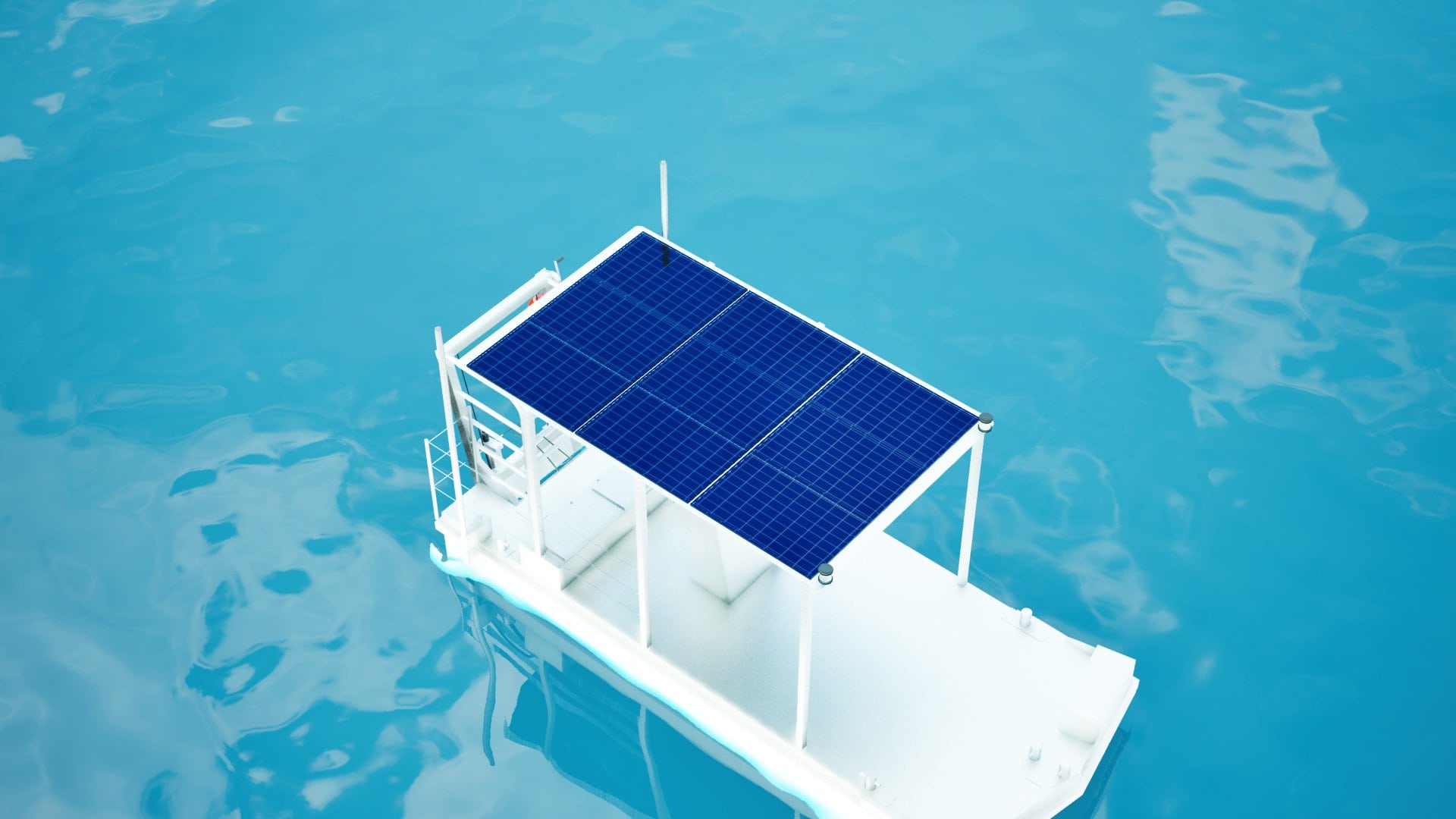 solaires alimentent directement les batteries de la barge, offrant une autonomie prolongée pour une navigation en autonomie partielle voire totale en mer