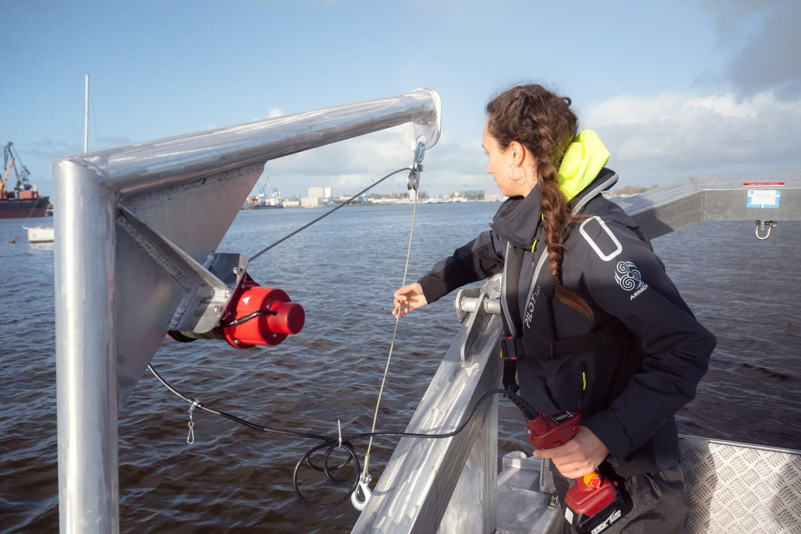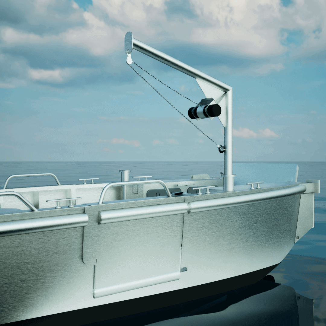 Son treuil de halage électrique permet de hisser et de tracter jusqu’à 500kg de matériel dans l’eau à bord.