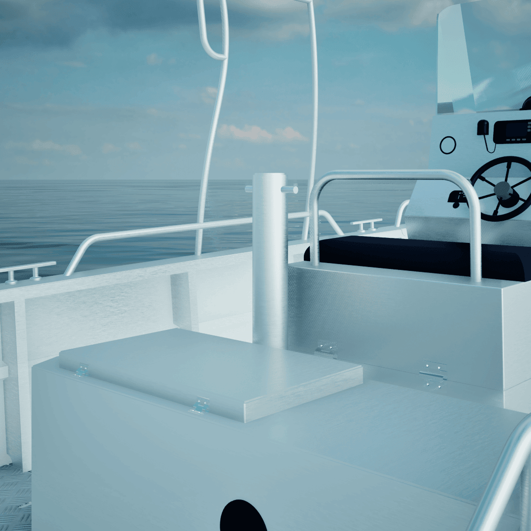 - Une position horizontale qui permet d’accéder et de travailler depuis l’avant du navire, et qui peut supporter jusqu’à 150kg.