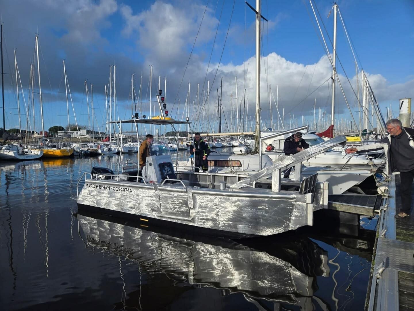 Le navire est équipé d’un mât de remorquage à l’arrière d’une CMU de 150kg, pour le remorquage des bateaux de plaisance.
